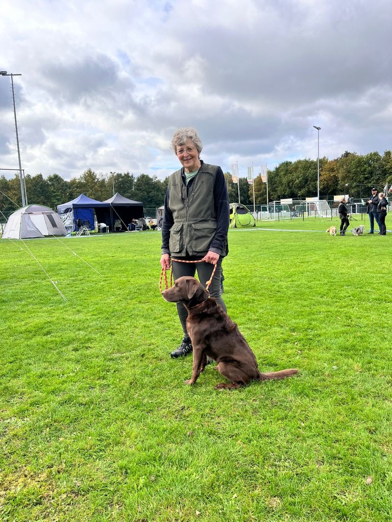 Ann-Sofie Hulshof-Diederich met haar superknappe Labrador Dobby. Samen hebben ze nog niet heel veel ervaring met wedstrijden maar hebben deze dag een hele mooie prestatie neergezet.